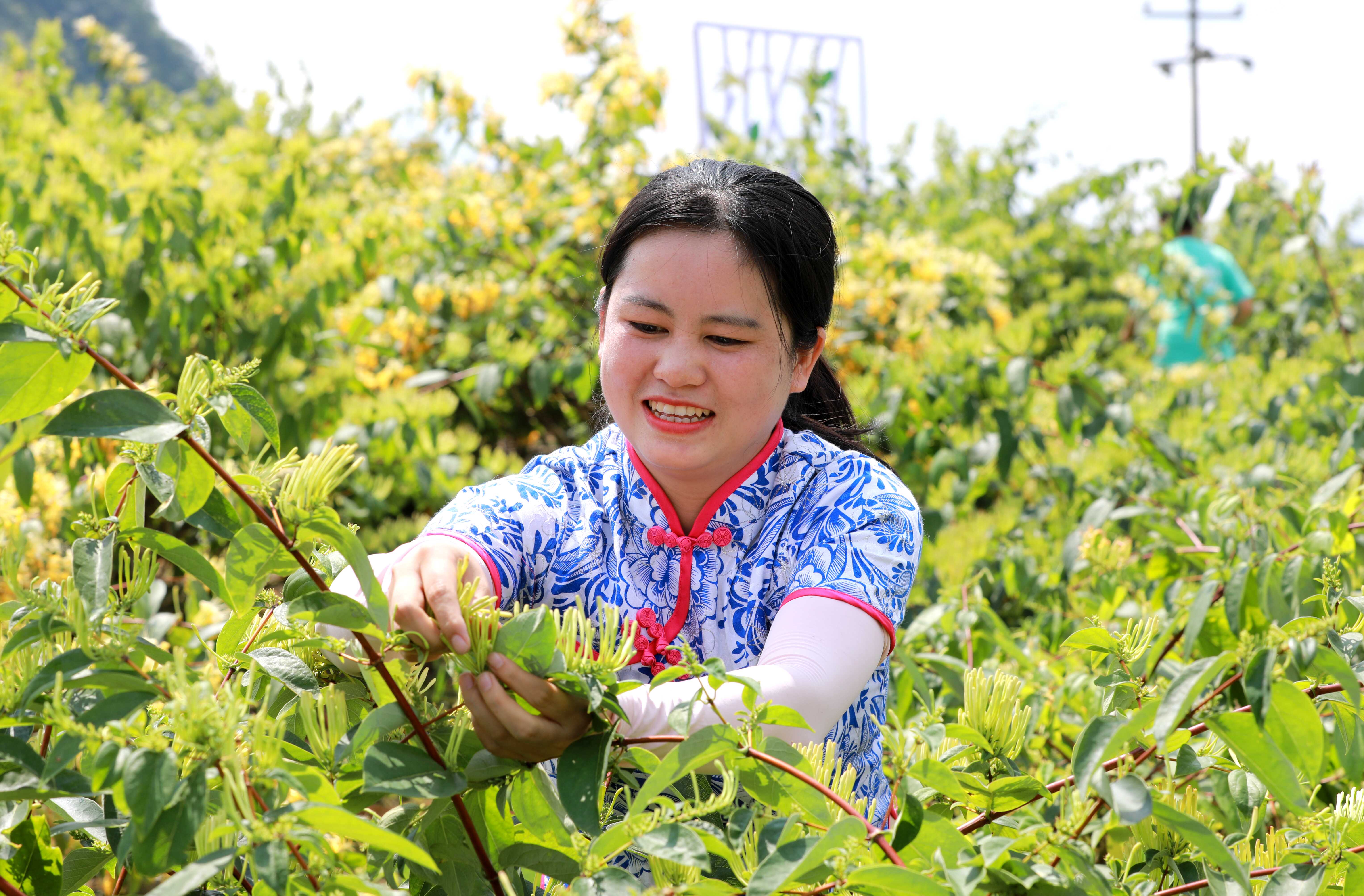 二、资源概述:绥阳县位于贵州省北部,属中亚热带湿润季风气候,年均气温15.1℃,年降水量1150mm,独特的喀斯特地貌和酸性土壤(pH5.5-6.5),为山银花生长提供了理想环境。绥阳县是贵州省道地药材山银花主产区,山银花以其高含量的绿原酸、多种药用功效、较强的适应性等方面著称。截止2024年,全县山银花种植面积24.25万亩,山银花粗加工厂68家,加工企业20家,省级龙头企业1家,市级龙头企业5家,开发品牌25个,品种50余种,综合产值突破9.5亿元,成为推动乡村振兴的支柱产业之一。