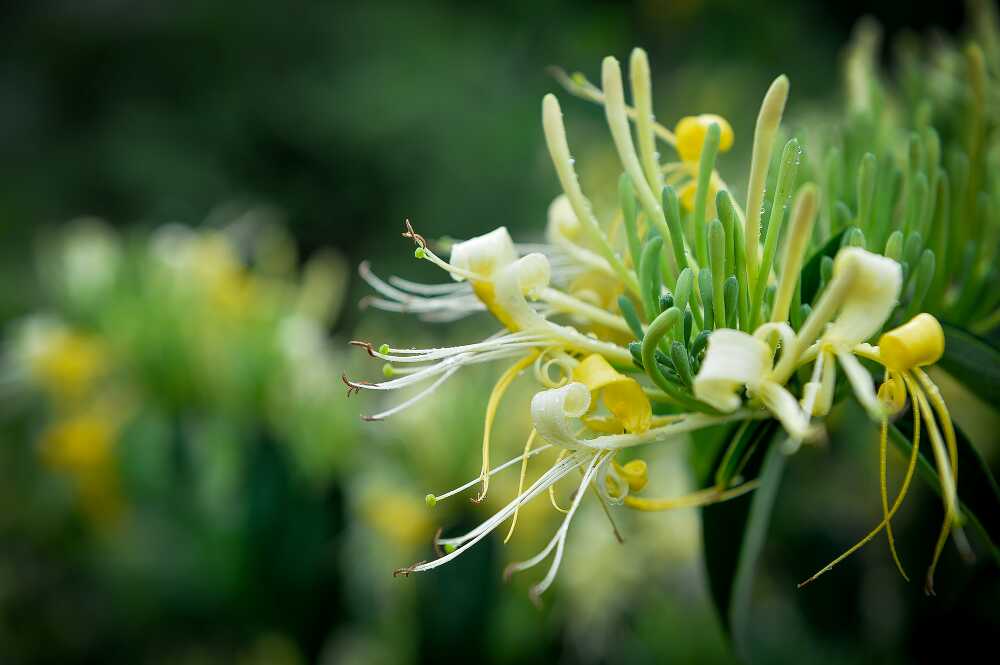 (1)形态特征:多年生半常绿缠绕性木质藤本,幼枝或顶梢及总花梗有薄绒状短糙伏毛,总花梗集结成簇,开放者花冠裂片不及全长的一半;花蕾呈棒状,长3.5-5.2cm,基部直径1.5-3mm;生长周期:3月萌芽、5月现蕾、6-7月盛花期、11月休眠。