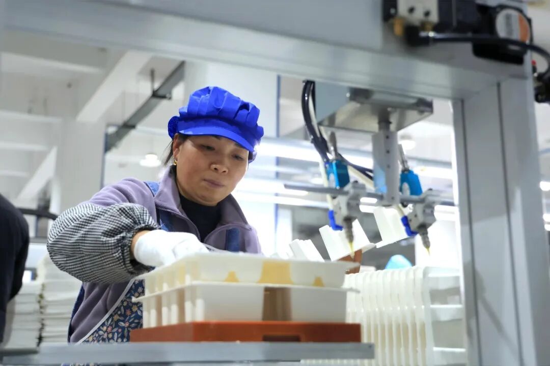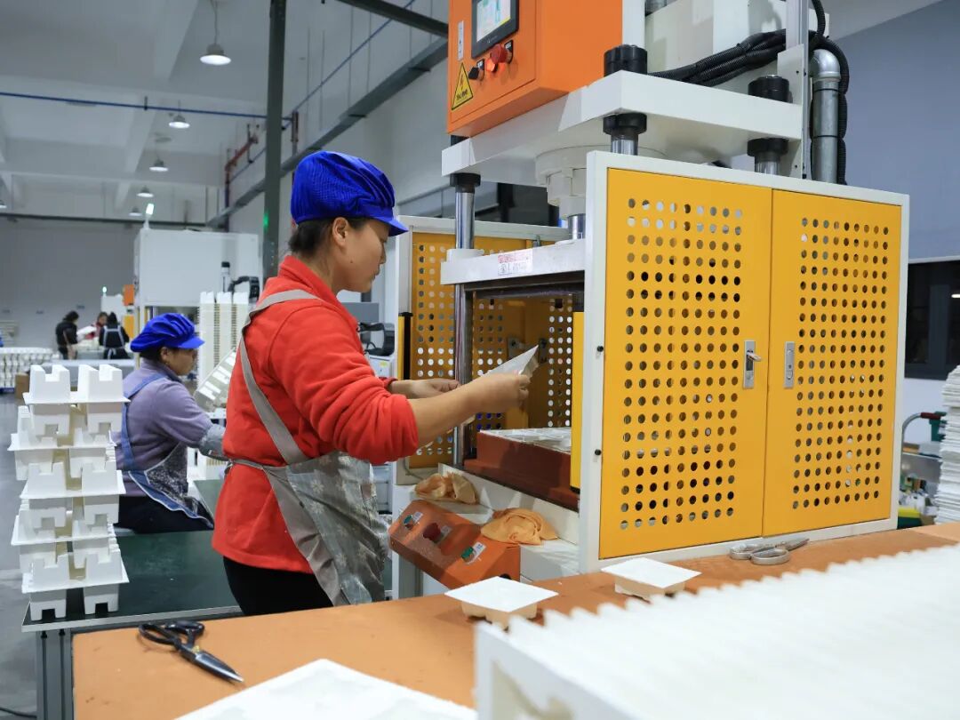 目前,企业已拥有48台双工位纸浆模塑自动机,5条生产线中2条已投产,百余名工人两班倒保障24小时不间断生产。预计12月底完成全部调试,明年1月实现满产,届时将新增就业岗位100余个。全面达产后,年产值有望突破5000万元。