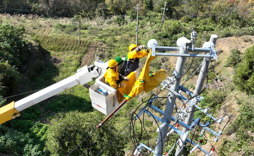 与此同时,在关川线小关乡路段,供电员工正在开展带电作业。工作人员身着全套绝缘防护装备,借助绝缘斗臂车,在不影响电网正常运行的情况下,顺利完成10千伏自动化开关的安装工作。这种“不停电”的作业模式,有效避免了因设备安装造成的用户停电,切实保障了沿线居民和企业在寒冬时节的连续可靠用电。