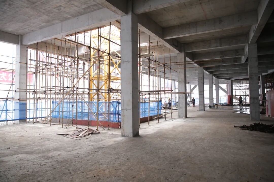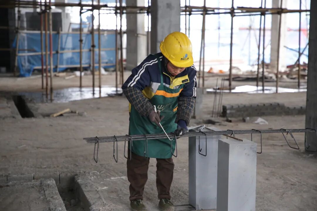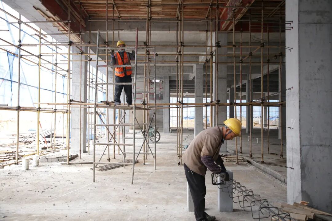 走进项目施工现场,塔吊有序运转,施工车辆往来穿梭,工人们在各自岗位紧张作业,室内砌筑与抹灰工序已全面展开,现场一派繁忙景象。