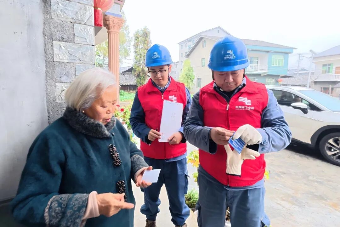 对于返乡家庭,工作人员不仅送上大米、食用油等慰问品,还坐下来与乡亲们拉家常,了解用电需求,耐心讲解冬季电暖器、电热毯的安全使用方法,手把手地教会老年人如何安全操作。临走时,一张印有片区经理电话的“连心卡”被郑重交到用户手中,“用电有问题,24小时随时打这个电话!”—— 这句承诺,让这个冬天的用电安心有了最直接的保障,也让返乡创业、居家就业的群众感受到贴心支持。
