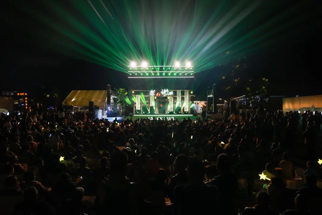 展演尾声,一曲《欢迎你到诗乡来》悠然响起,动听的旋律和真挚的歌词回荡在田园夜空,掌声与欢呼声此起彼伏。