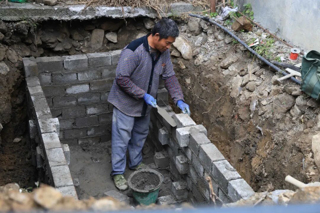“三个池子按2∶1∶3的比例建造,有效溶解不低于2.5立方米,确保充分发酵。第一个池子连接排气管,高度必须达到2米。”乡村工匠张小强介绍道。