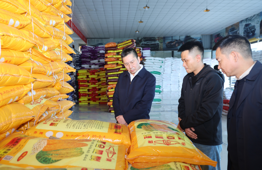 在遵义北源农资贸易有限公司,陈灿详细了解农用物资储备,听取供应情况介绍,强调要切实扛起农资保供政治责任,健全工作机制,确保农资产品供应不脱销、不断档,为粮食保产、农民保收提供有力保障。