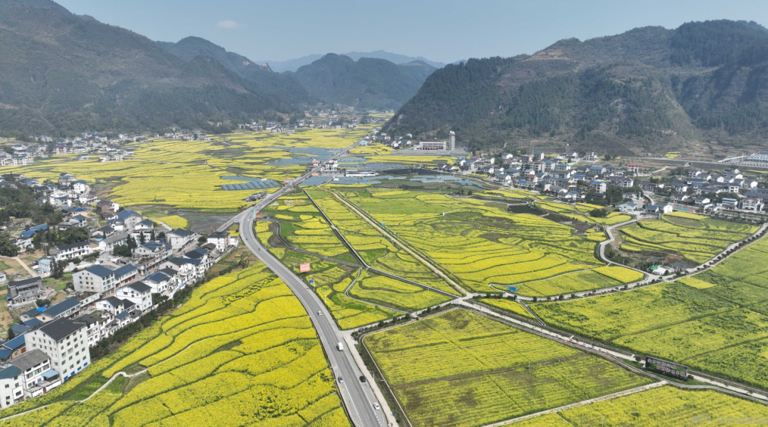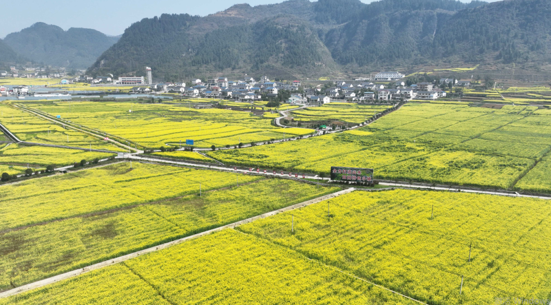 阳春三月,诗乡大地花影摇曳、春意纵横。在绥阳县旺草镇万亩大坝,成片的油菜花竞相绽放,花田错落有致,绵延数里,与周边村落、民居交相辉映,勾勒出了一幅农村美、农业兴、农民富的乡村振兴美好图景。