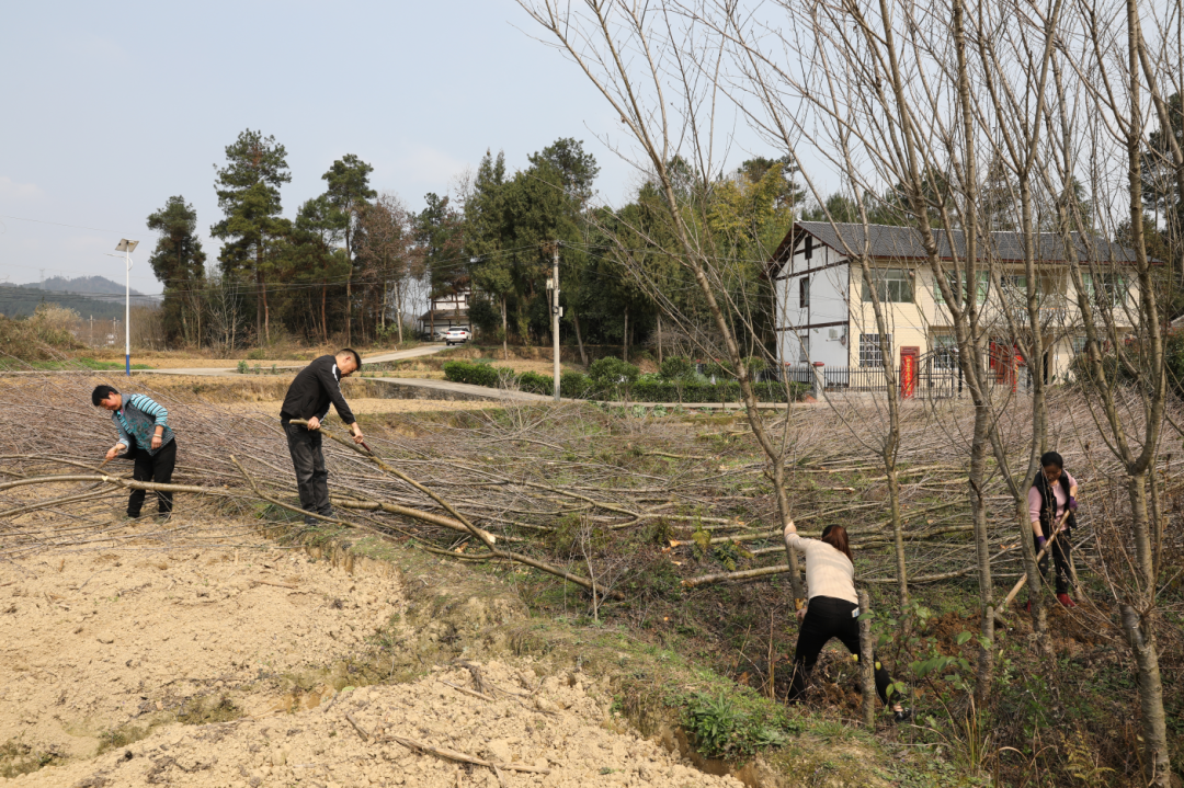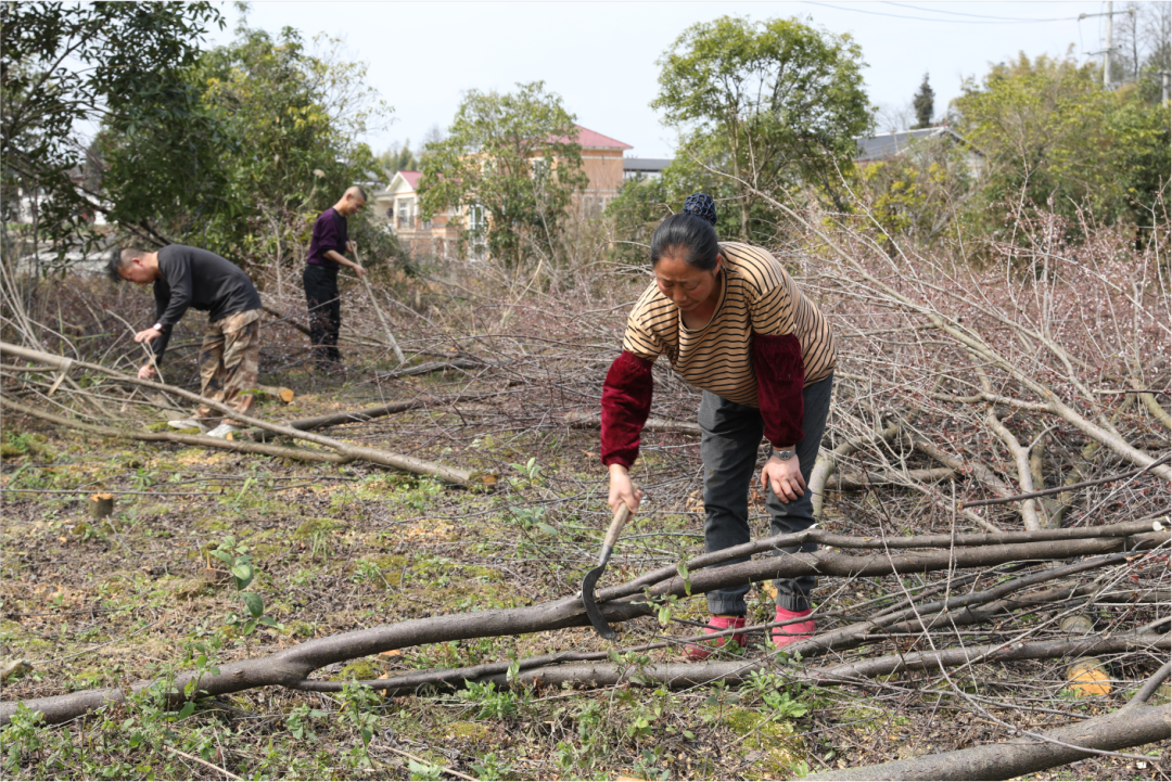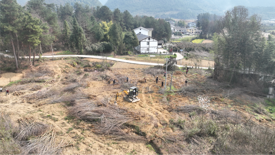 在整治现场,挖掘机正紧张作业,一片片过去种植苗木的土地被不断平整清退,一旁的村民忙着清理、搬运倒下的树木,现场一派热火朝天的劳动景象。