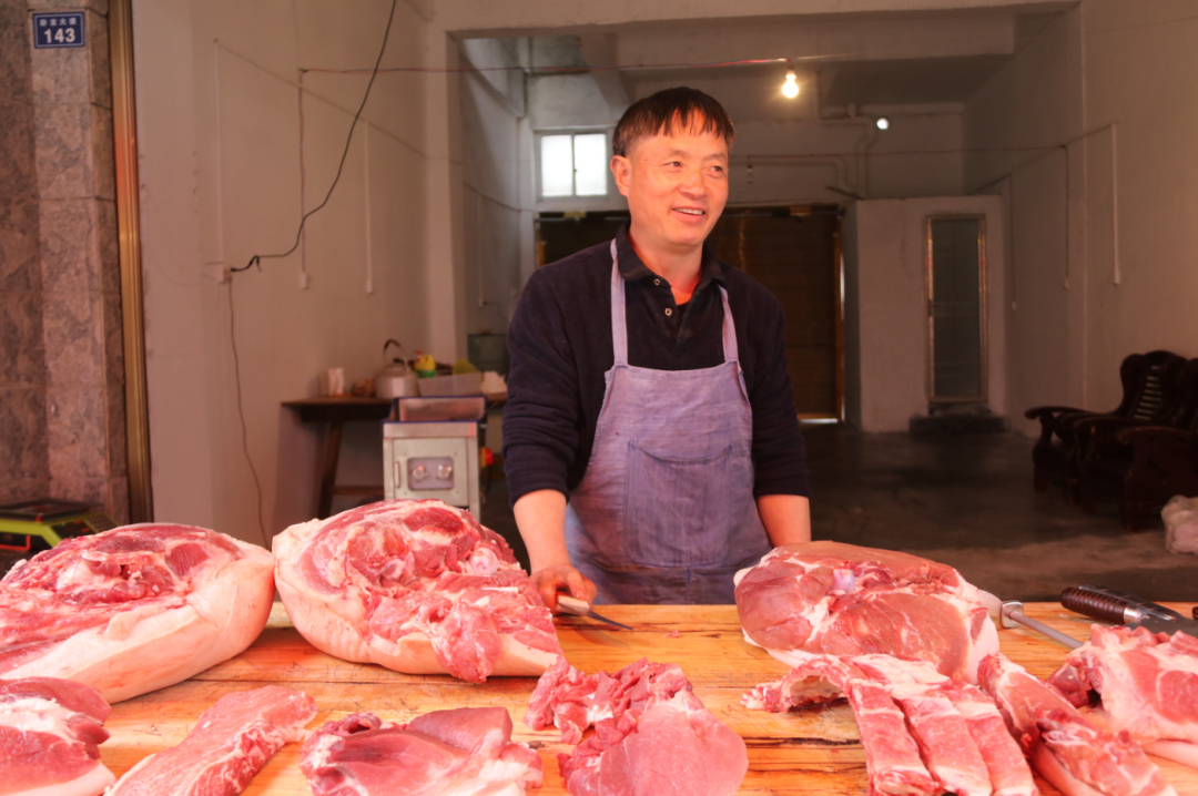 和蒋应涛一样高兴的还有卖肉的商户程立强,从事猪肉售卖生意40年的他,在老农贸市场时只有一个摊位,搬到商贸中心后,有整间门面做生意的他高兴不已,且两年免租金的惠民政策更是让他对属地政府、相关爱心企业连连称赞。