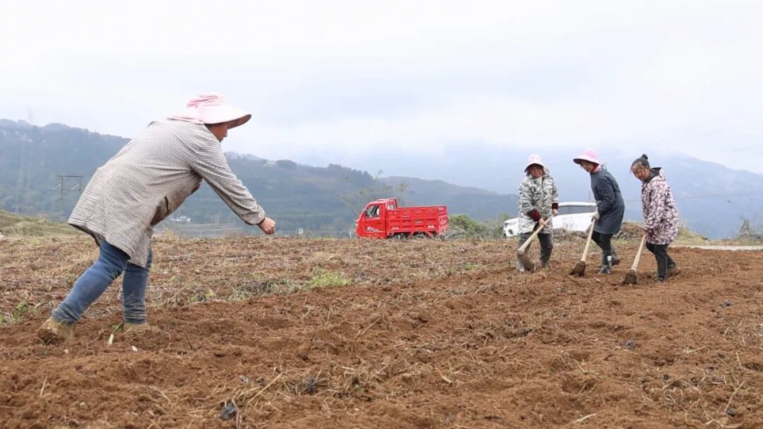 依托当地逐渐完善的交通与农田基础设施,公司把旋耕机开进田间地头。伴随着机器的轰鸣,土地被快速深翻,工人紧随其后挖窝、播种,效率大幅提升。