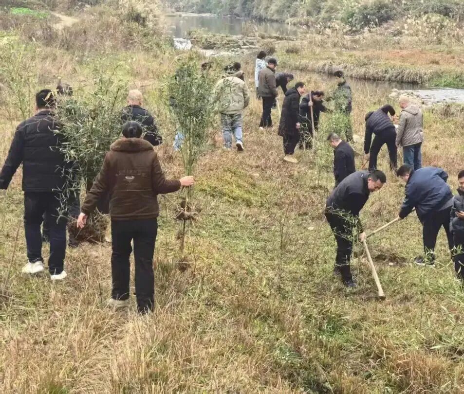 1月27日,温泉镇组织开展新时代文明实践义务植树活动,以水竹为苗、以赤尾溪为脉,让绿色生态惠及更多群众。