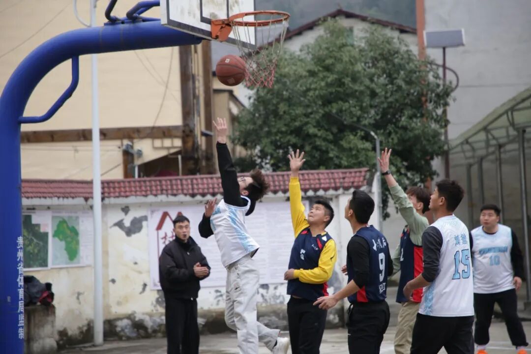 上午10点,篮球赛率先开赛。各个代表队轮番上阵,场上队员奋力拼抢,场边村民加油助威,冬日的寒意被热烈的气氛驱散。