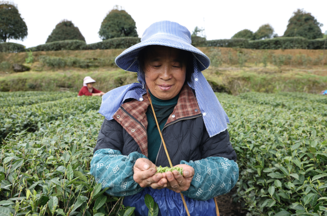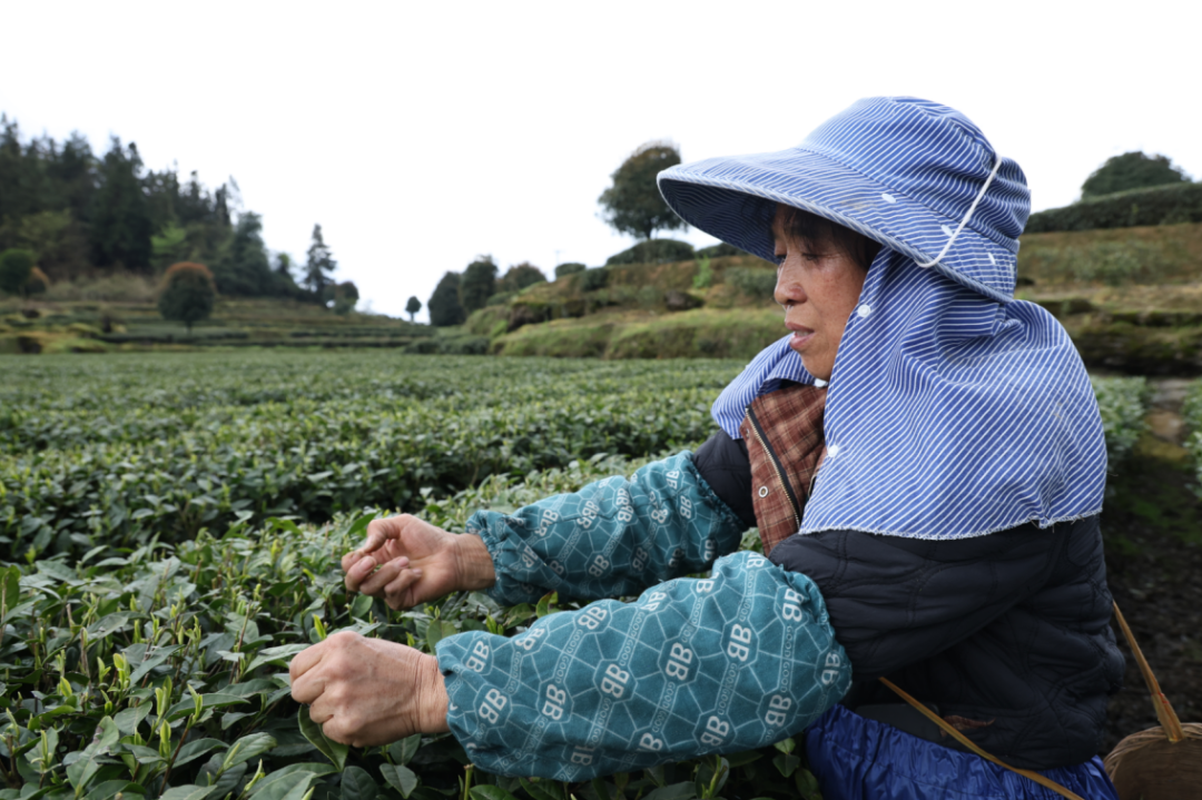 “‘明前茶’,贵如金,就是因为只采摘最鲜嫩的茶芽,采茶人一天下来只能采3斤左右,但它的品质好、价格高,我们茶农就盼着靠‘明前茶’有个好收成。”有着多年种茶经验的大寨村村民宋具容一边熟练地采摘,一边笑着说。