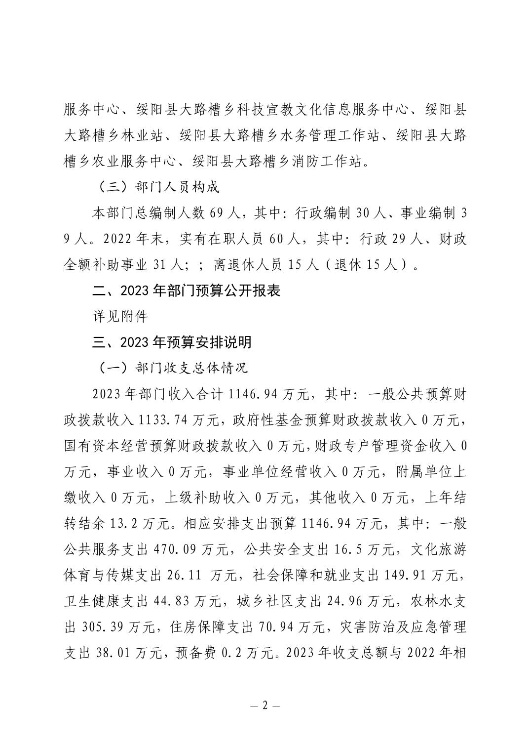 绥阳县大路槽乡2023年部门预算及 “三公”经费预算信息