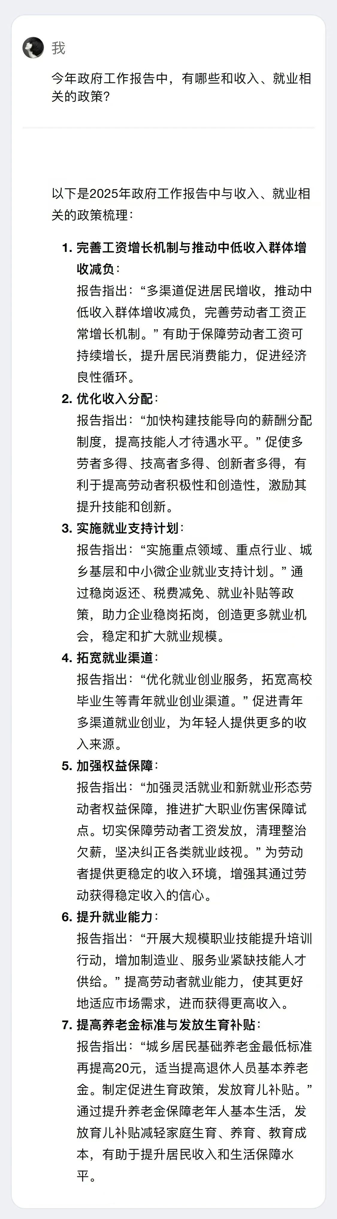 2025年政府工作报告将如何影响你我的收入、工作、生活?我们替你问了问大模型,一起来看吧!