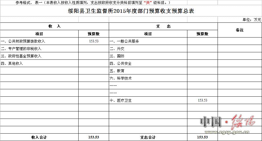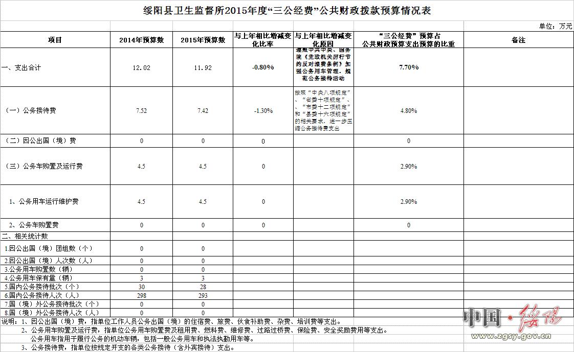 绥阳县卫生监督所2015年部门预算及“三公”经费预算信息