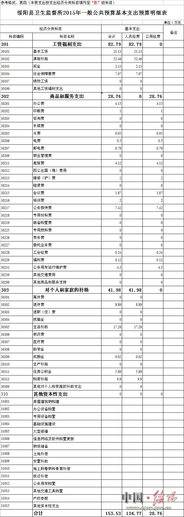 2015年部门预算总额153.53 万元,其中公共卫生和卫生监督机构对应收入来源划分情况如下: