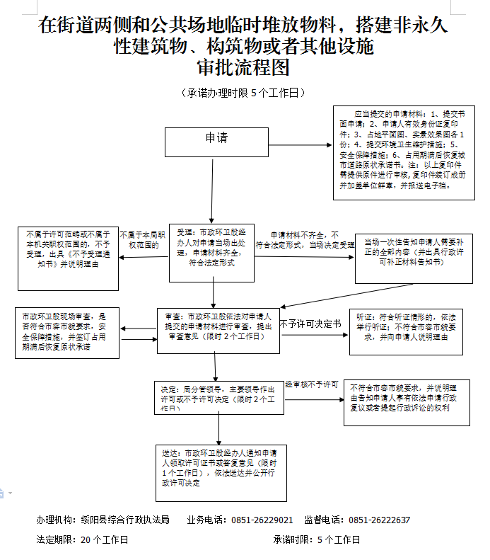 在街道两侧和公共场地临时堆放物料,搭建非永久性建筑物、构筑物或者其他设施 审批流程图