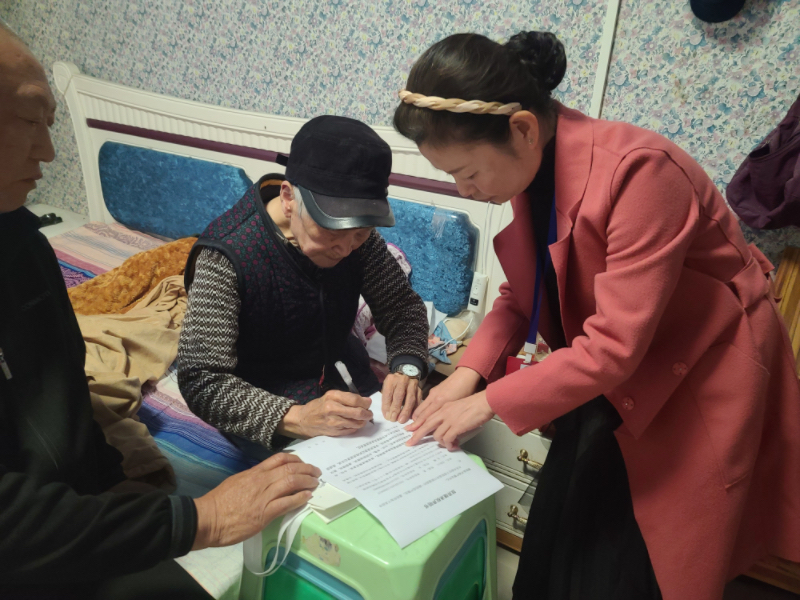 2023年3月16日至17日,她主动申请和其他两位工作人员下乡为绥阳县茅垭镇芙蓉水乡营销中心的群众办理业务。在办理现场,她用心核对每位老人提交的身份证明、购房合同、房屋图纸等资料,并耐心指导其填写申请表及个人信息,不到十分钟,所有手续便办结完成。她的用心服务,赢得了群众的好评。杨仁学老人不禁竖起大拇指说道:“今天上门来给我们办证,我们非常高兴,通过方便群众的方式到现场办公,这是照顾我们这些买房子的老人,为民服务,我必须要点赞!”