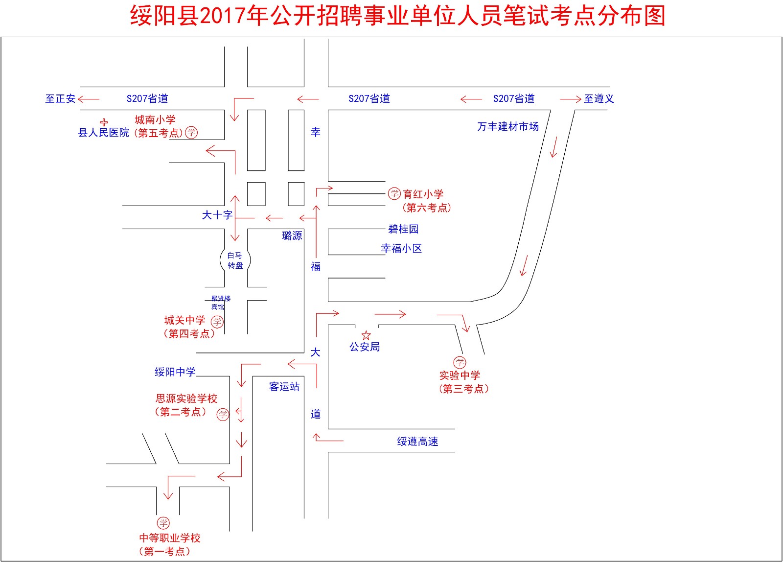 附:绥阳县2017年公开考试招聘事业单位人员笔试考点线路示意图